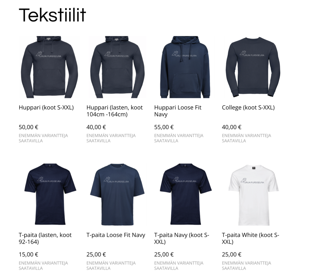 120-vuotisjuhlan kunniaksi suunniteltu Turun Pursiseuran seuratuotemallisto on nyt julkaistu ja tuotteet tilattavissa verkkokaupasta. Vaikka mallisto on juhlavuodeksi suunniteltu, se on tehty ”ajattomaksi” eli se on käytettävissä ja tilattavissa myös juhlavuoden jälkeen.